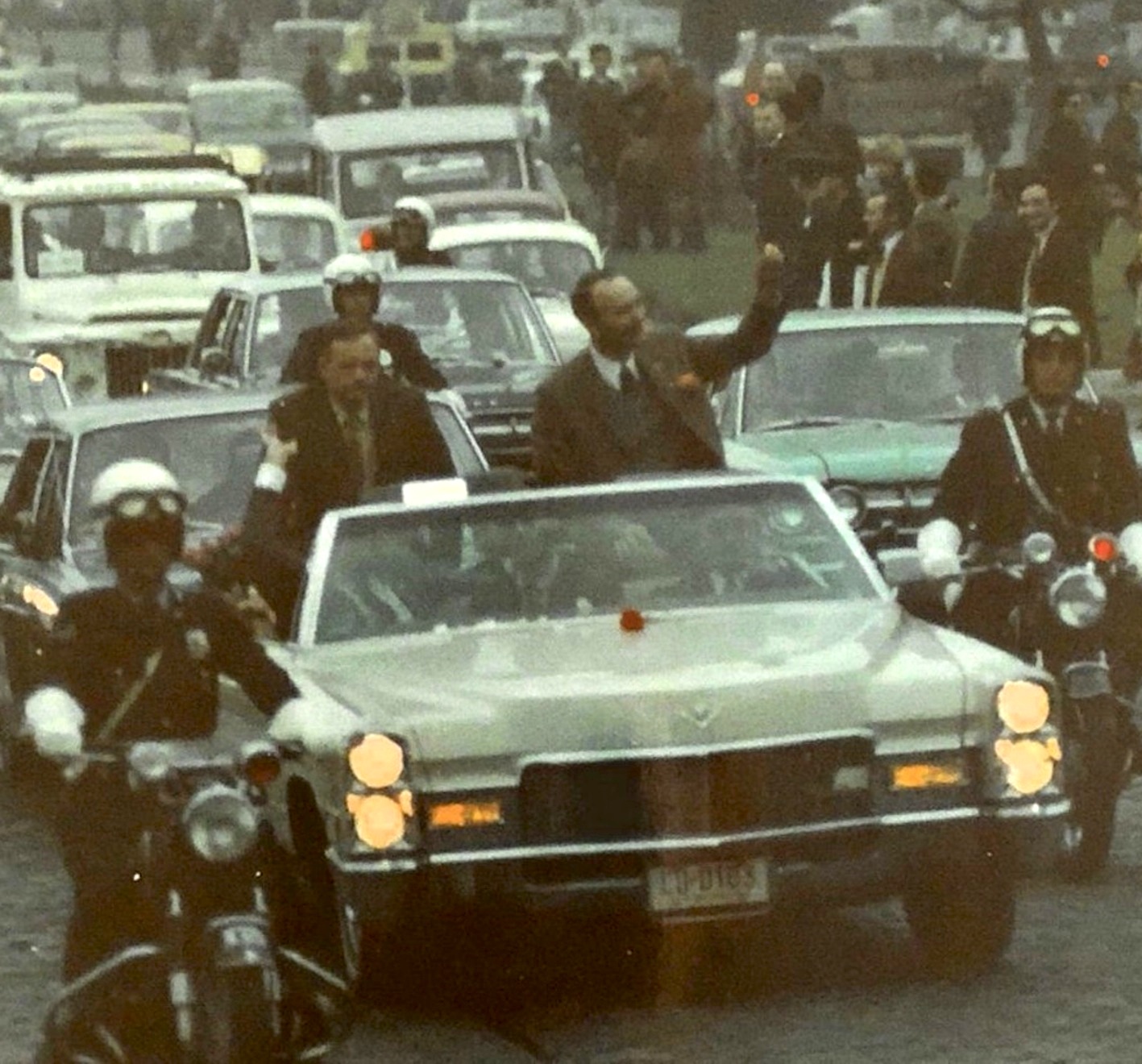 Below: astronauts Armstrong and Collins, waving in Av. Libertador; Patricio is waving back. Photo: courtesy AGN.